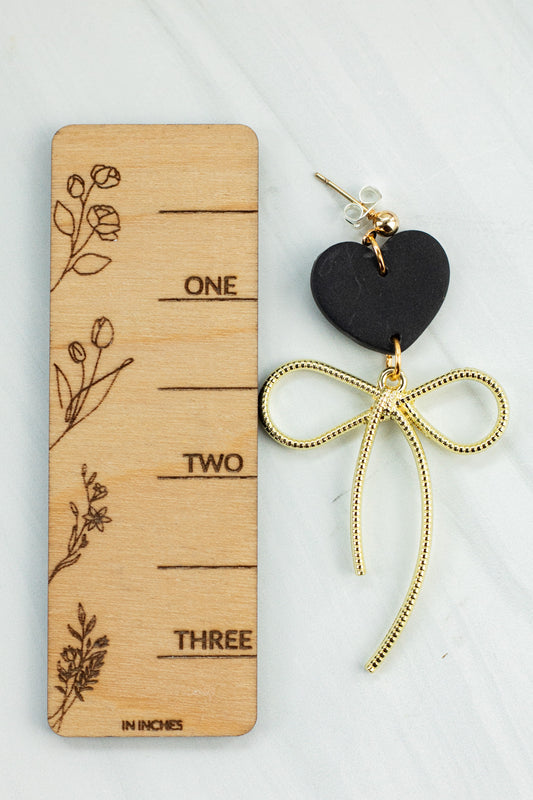 Black heart bow dangles