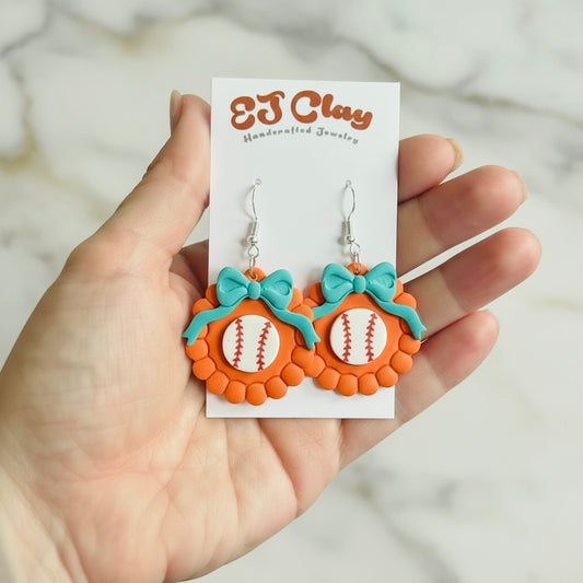 Custom Baseball Scalloped Bow Dangles